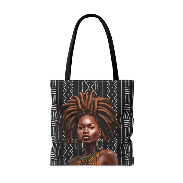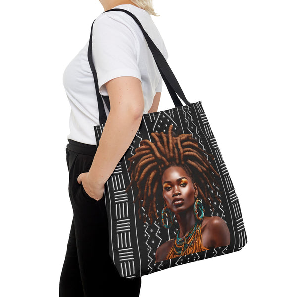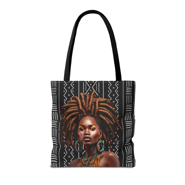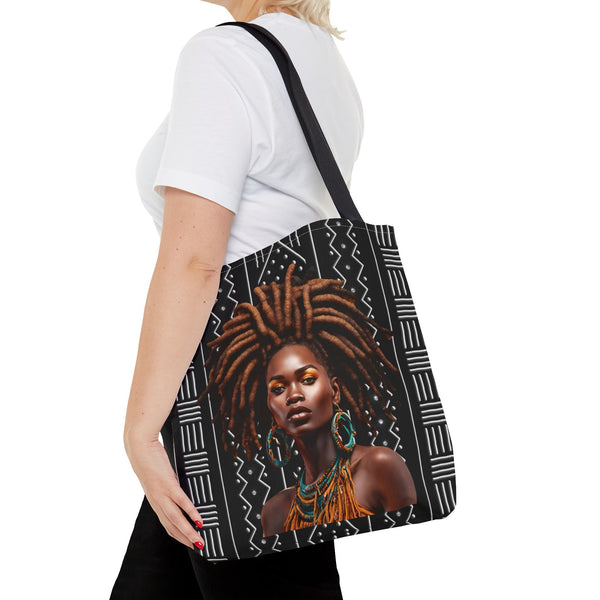 This roomy tote carries quiet confidence. The rich illustration of a brown locs African American woman — warm skin tones, coiled locs, and a serene, regal expression — sits proudly on durable fabric. It reads like a small affirmation every time it’s swung over the shoulder: heritage, care, and everyday resilience. The tote’s structured box corners and reinforced handles make it work-ready for market runs, studio days, or library afternoons. Lightweight yet sturdy, it slips into daily rhythms — from farmers’ markets to bus rides — and holds everything from sketchbooks to groceries without losing shape. Choose a handle color that echoes your style or blends in for low-key polish. For anyone who wants their essentials carried with intentionality and a visual nod to Black beauty, this bag feels like a trusted companion.