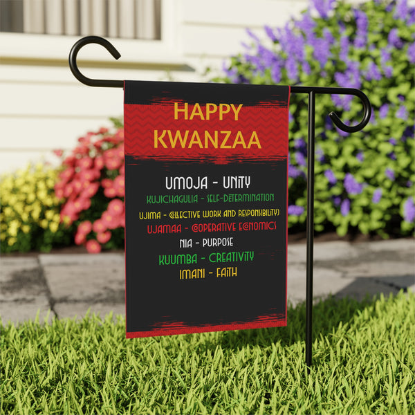Celebrate Kwanzaa with a banner that belongs on the porch or tucked into a winter garden bed. Lightweight poly poplin-canvas holds color-rich prints that read clearly from the sidewalk and from across a stoop. The top sleeve slips onto a standard garden or house flagpole so the banner hangs crisp and upright. Printed on both sides with a dark inner lining, the design stays bold whether you view it from the walk or the street. It brings the warmth of kinara light and community celebration to entryways and outdoor planters—small, intentional decoration that speaks to gatherings, quiet reflection, and neighborhood cheer during December evenings.